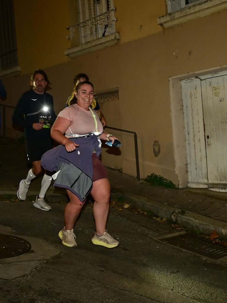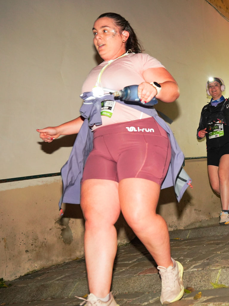 La Montée du Télégraphe (330 m à 11,5 %) me rappelle que le LUT by Night, c’est avant tout un trail urbain exigeant. Arrivée en haut, je retrouve mon souffle et, presque comme par magie, la douleur disparaît. Je me remets à courir avec plaisir : descentes, faux-plats, relances… tout s’enchaîne naturellement.