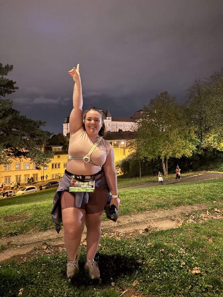 En revanche, je n’avais pas du tout préparé le dénivelé ni les escaliers spécifiques du parcours du LUT by Night. C’est d’ailleurs ce qui m’inquiétait le plus à l’approche de la course : je savais que je pouvais gérer les 10 km, mais les montées raides et les descentes techniques restaient une inconnue. À cela s’ajoutait un peu de fatigue accumulée des dernières semaines. Malgré tout, je partais confiante, car le temps limite très large de l’épreuve me garantissait de pouvoir terminer sans pression — même les derniers coureurs du 20 km et du 30 km étaient attendus jusqu’à 00h45.