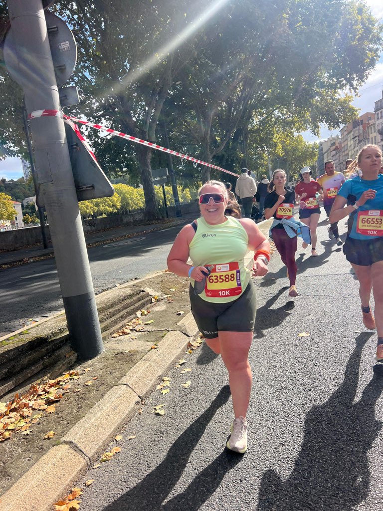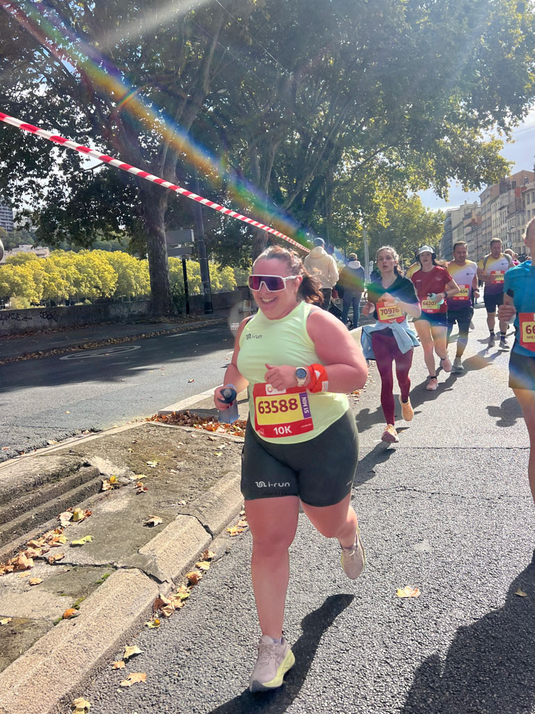 Mais je reste prudente. Je connais le parcours du Run in Lyon, et je sais qu’il n’est pas si roulant qu’on le pense : ponts, tunnels, relances, il ne pardonne pas aux départs trop enthousiastes. Je garde donc un œil sur mes sensations, sans m’emballer.