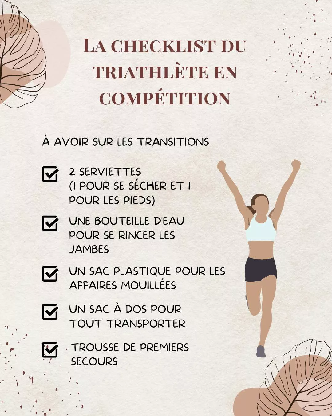C’est pourquoi je vais te présenter une checklist complète des éléments essentiels à avoir avec toi lors de cette épreuve exigeante. En suivant cette liste, tu seras parfaitement préparée pour affronter les défis de chaque discipline (natation, cyclisme et course à pied) et pour profiter pleinement de ton triathlon. Alors, prépare-toi à prendre des notes et à t’assurer d’avoir tout ce qu’il faut pour briller lors de ta prochaine compétition !
