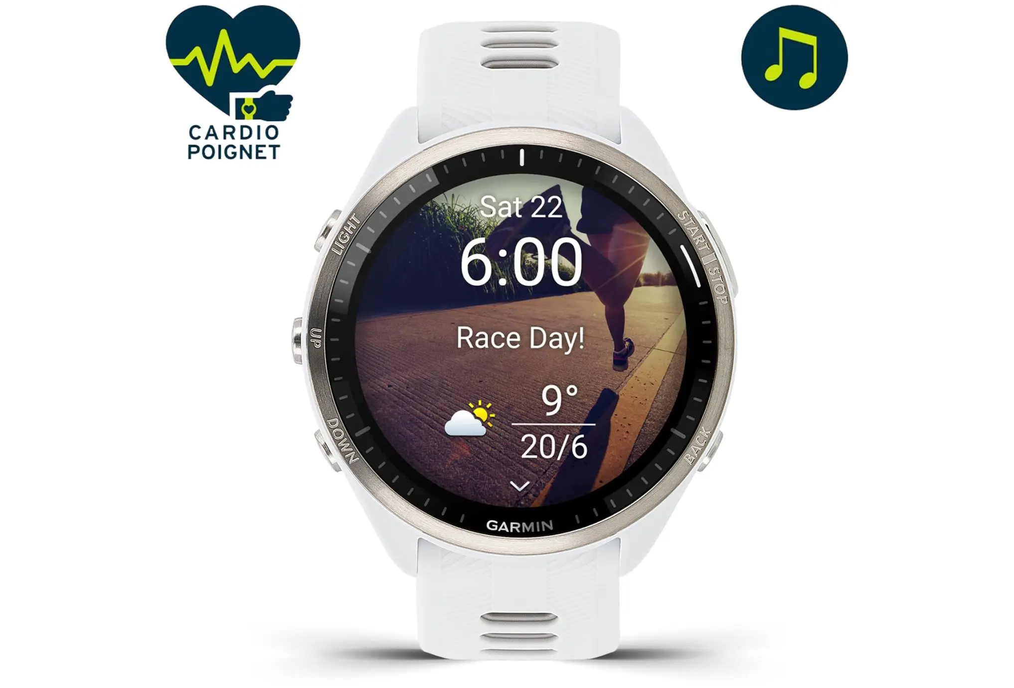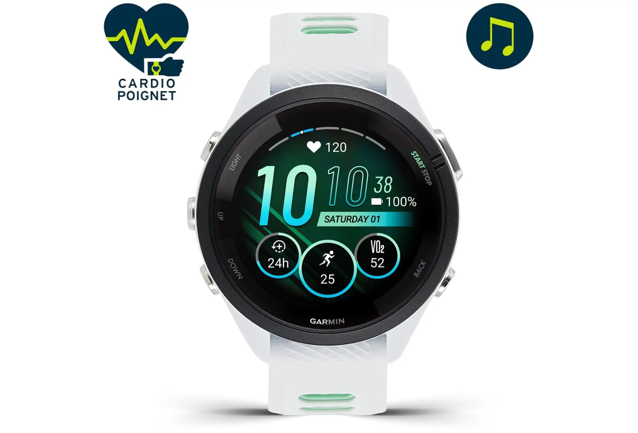 Tu veux un écran plus lisible et des fonctions “coaching” modernes ? La Garmin Forerunner 265 ajoute un écran AMOLED très net et tout l’écosystème Garmin pour gérer charge, récupération et séances programmées. Confortable au quotidien, elle reste axée montre GPS running mais sait suivre le vélo ou la natation si tu fais du croisé.