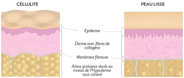 Ainsi pour combattre la cellulite, l’objectif va être de vider cette zone sous-cutanée de stockage et d’améliorer la tonicité de la peau. Il y a donc une double action à mener : en surface (qualité de la peau) et en profondeur (zone de stockage graisseux).