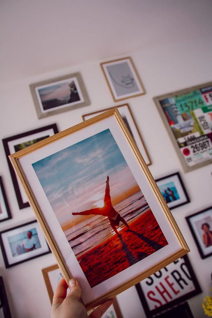 La première étape avant d’installer un mur de photos est de choisir les dites-photos. Personnellement, j’ai choisi d’imprimer celles qui avaient de la valeur à mes yeux. Des photos dont j’étais particulièrement fières ou qui me rappelaient des souvenirs que je ne veux pas oublier. Une sortie en famille, la découverte des cascades du Jura avec Jessica, un arc-en-ciel à la plage… ou encore un shooting où je me suis sentie particulièrement canon.