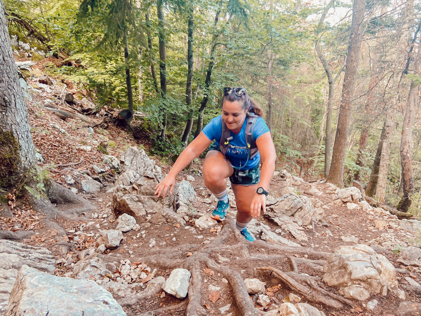 De plus, en commençant lent et petit, tu travailleras aussi la proprioception. À savoir tes appuis. Parce qu’en montagne, une chute est vite arrivée ! D’ailleurs tout traileur chute à un moment donné. Il faut le savoir. Certains font comme moi, se vautrent à plat ventre sur de la terre, sans caillou ni racine, sans comprendre comment ils ont pu s’emmêler les pieds. Et d’autres se prennent les pieds dans les racines et vont embrasser les arbres… C’est pour cela qu’il est important que tu y ailles tranquillement pour travailler tes appuis… et surtout apprivoiser la peur de courir en descente 😅