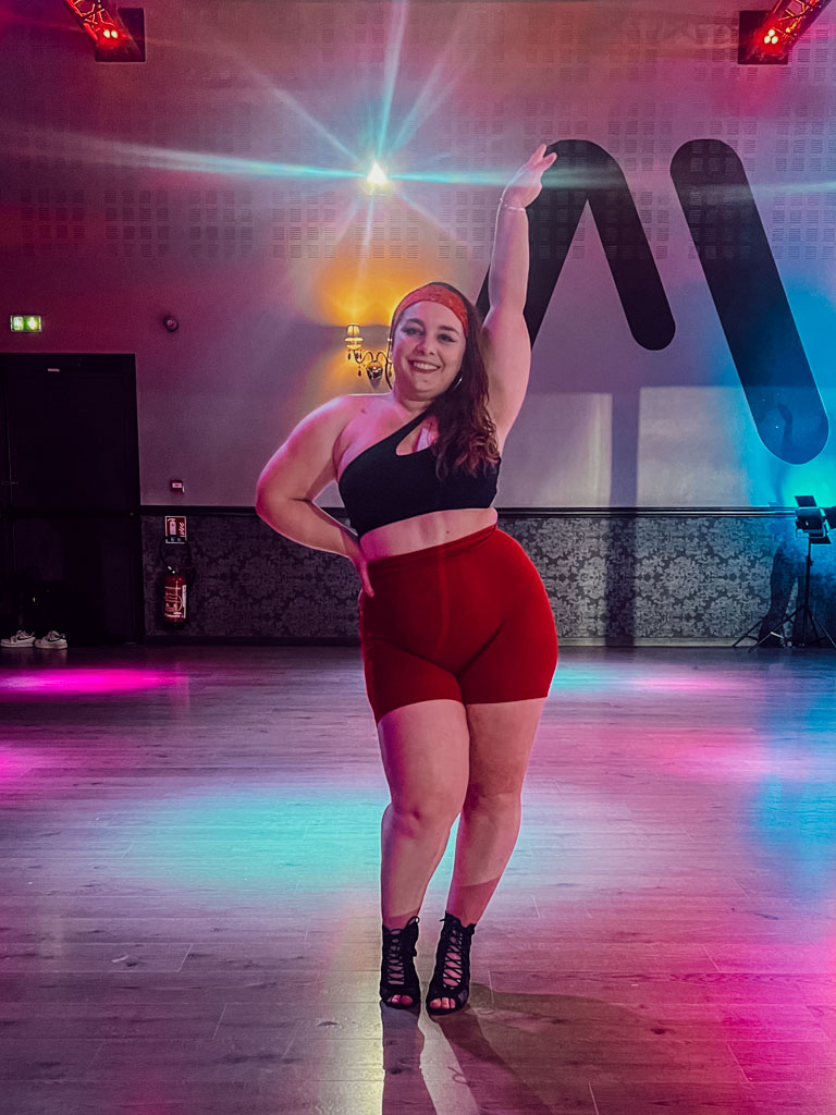 Avant de te sentir forte, tu dois pouvoir te sentir là, dans ton axe, dans ton espace. Et ça, c’est quelque chose que le heels m’a appris sans que je le cherche : chaque mouvement m’obligeait à être attentive, ancrée, connectée… parce qu’en talons, le corps ne triche pas. Sinon c’est la chute assurée.
