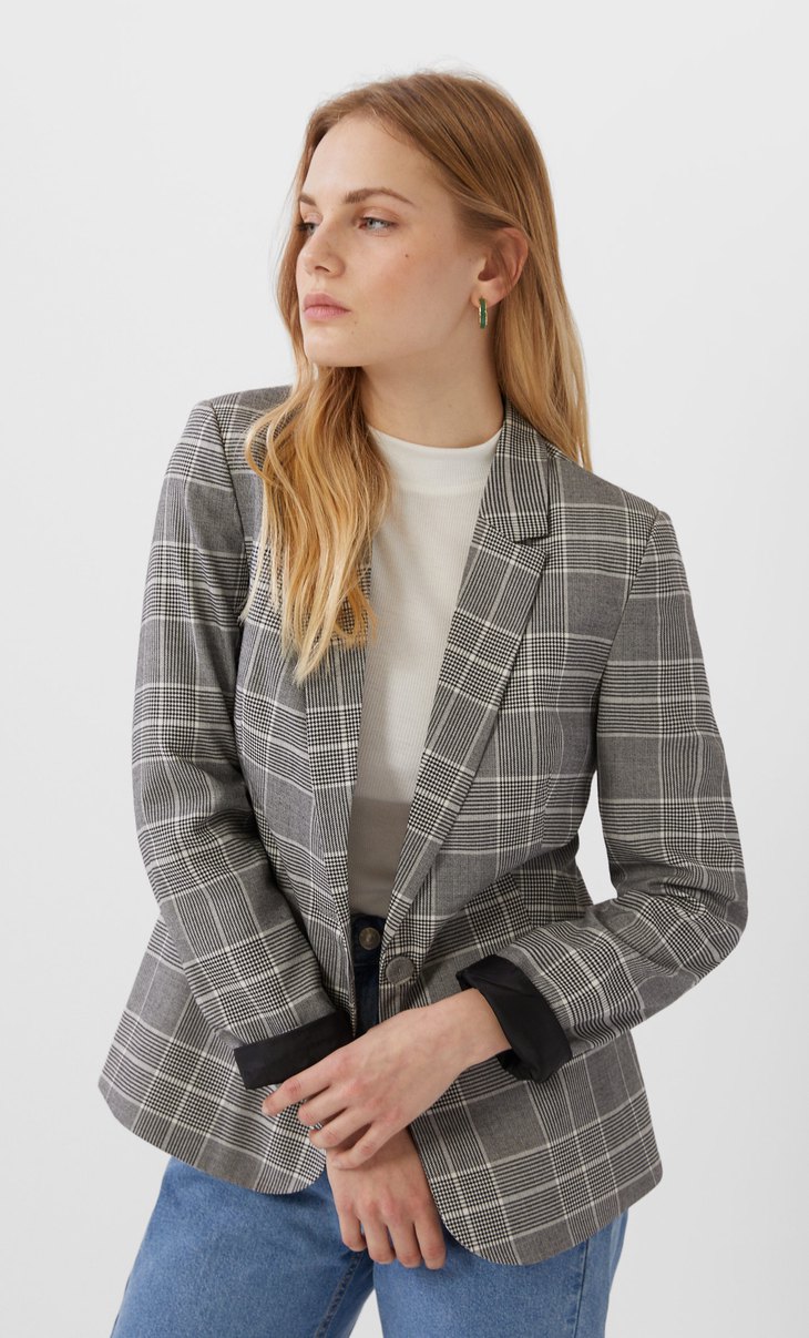 Ainsi je te propose de découvrir ce look romantique composé d’une jupe patineuse Promod, d’une blouse en dentelle Kiabi et d’un blazer long à carreaux gris Zara. Le tout accessoirisé avec un serre-tête Etsy, un sac à mai « croco » noir Kiabi, une paire de collants fantaisie Calzedonia et des bottines à talons camel, achetées sur Vinted et dont j’ignore la marque. Comme bien souvent, la majorité des pièces fortes de ce look proviennent de Vinted.