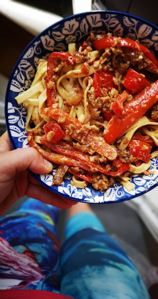 Pâtes fraîches, poivron et protéines de soja à la crème de soja : les options