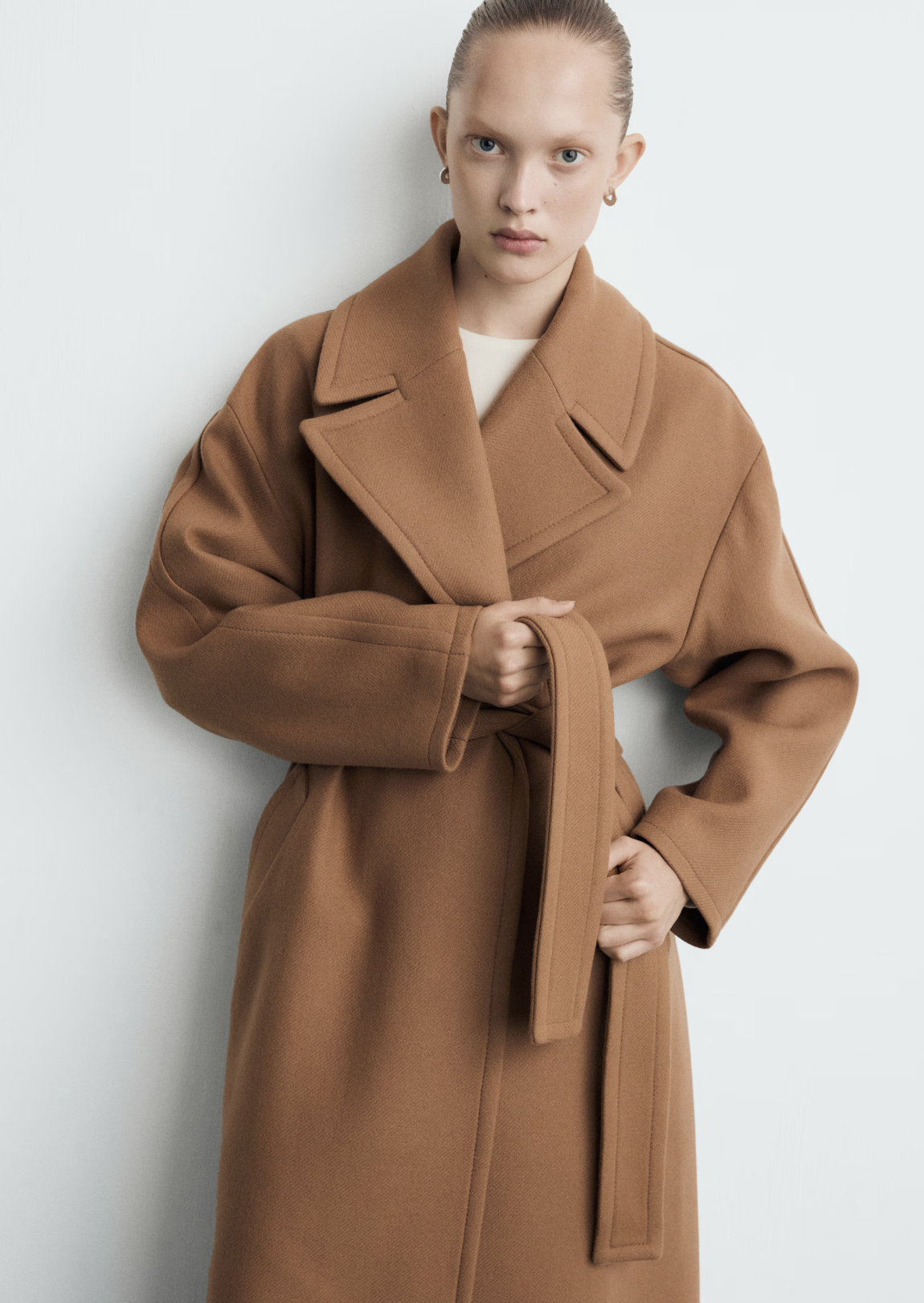 Il y a aussi ces teintes de transition, que l’on sous-estime énormément : le beige lumineux, le camel chaud, l’écru. Elles sont précieuses quand on veut éviter le noir en hiver mais qu’on ne se sent pas prête pour une couleur très marquée. Elles apportent immédiatement plus de lumière, surtout près du visage, et créent une base idéale pour accueillir une pièce colorée plus affirmée.