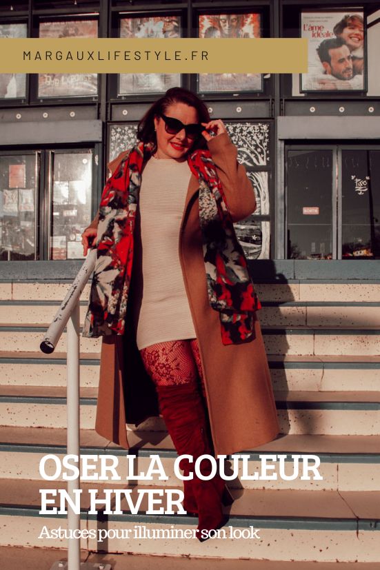 Ce principe est infiniment adaptable. Si le rouge n’est pas ta couleur, tu peux très bien imaginer des bottes vert sapin, bleu cobalt ou violet profond. Si tu préfères éviter les chaussures colorées, un manteau coloré porté sur une tenue beige ou écrue fonctionne tout aussi bien. Et si tu as envie d’y aller encore plus doucement, un sac, une écharpe ou un foulard coloré peuvent suffire à transformer ton look d’hiver.