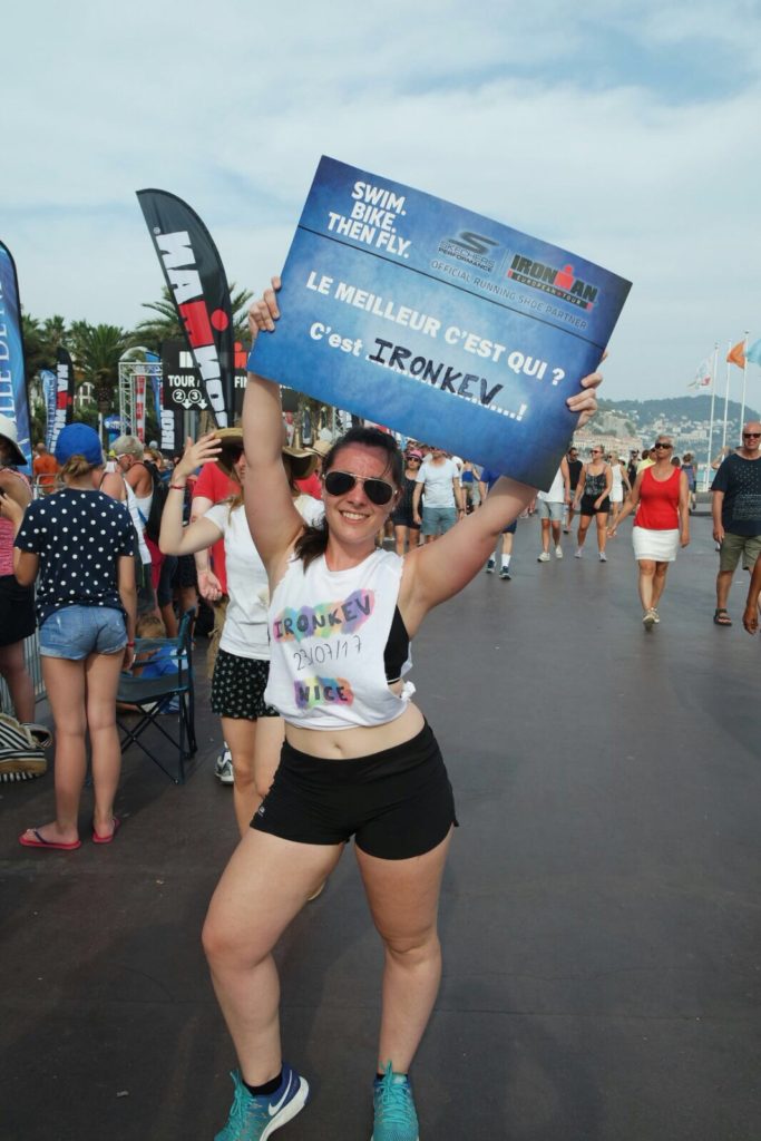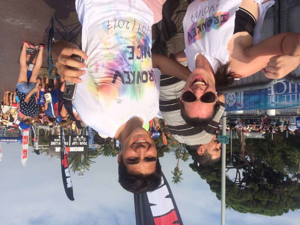 Et là, tu le vois… Et vous vous déchaînez avec le reste de la team supporter… Il n’y a pas d’autres mots. C’est juste magnifique ce qu’il a fait. Il est finisher de l’Ironman de Nice. Un an qu’il porte ce projet. Et voilà, maintenant qu’il le réalise… Tu es tellement contente pour lui.