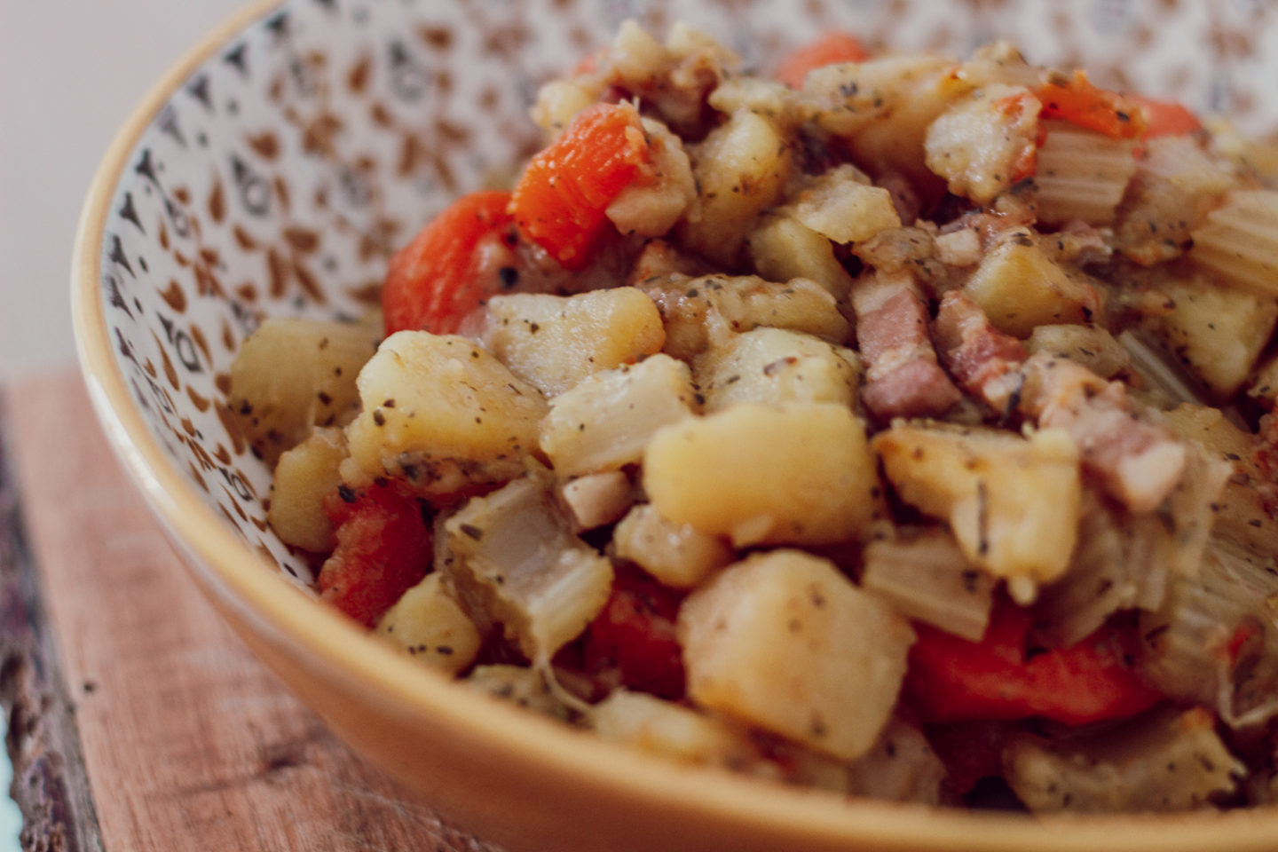 À base de pommes de terre, de céleri et de carottes, le fricot est une recette idéale pour l’hiver ainsi que parfaitement équilibrée ! Et surtout, très facile à faire ! Je te préviens cependant : ma grand-mère fonctionnait à l’à peu près. Par exemple, elle n’écrivait jamais les mesures exactes de ses recettes. Le meilleur que l’on pouvait espérer, c’était « 4 ou 5 œufs, selon la grosseur des œufs » si tu vois ce que je veux dire… Et maintenant, place au fricot !