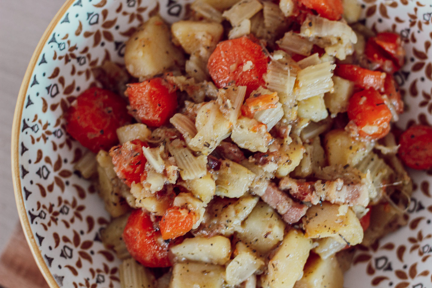 C’est un plat juste parfait et très complet avec des féculents (les pommes de terre), des légumes de saison (carottes et céleris) qui apportent vitamines et minéraux essentiels pour passer l’hiver en bonne santé, et des protéines…